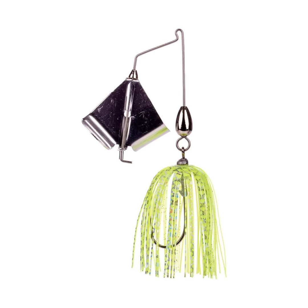 High energy meets topwater mayhem in the Strike King® Swinging Sugar Buzz. Like a kid on candy, this supercharged buzzbait makes a ton of noise and is constantly on the move—provoking strikes from the moment it hits the water. The surface-churning prop creates a loud clacking sound, while the free-swinging skirted hook waves wildly back and forth throughout the retrieve. The Strike King Swinging Sugar Buzz generates more action than most bass can stand, and the jointed design helps keep those hooked fish hooked! Great at any speed.