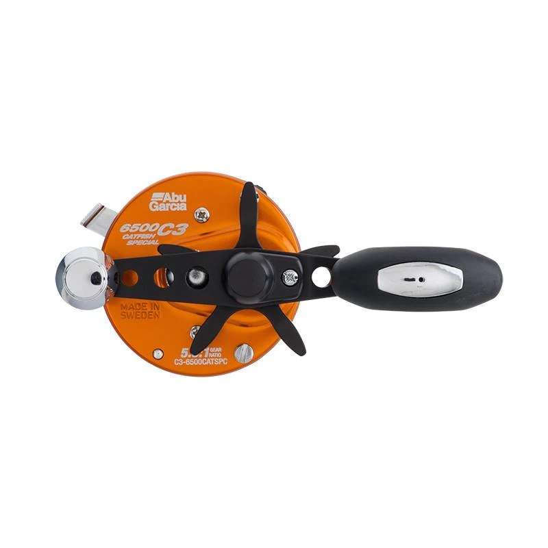 Born from the C3 round reel platform, the ambassadeur® Catfish Special fishing reel offers anglers a unique package backed with proven components designed specifically for catfish fishing. Performance starts with a 3 stainless steel ball bearings + 1 roller bearing system and a smooth and consistent Carbon Matrix™ drag system. The 6 pin centrifugal brake delivers controlled casting while the extended bent handle with power knob gives anglers additional torque and power for hard pulling fish. The synchronized level wind system ensures even line lay and a smooth retrieve. Custom color and graphics.