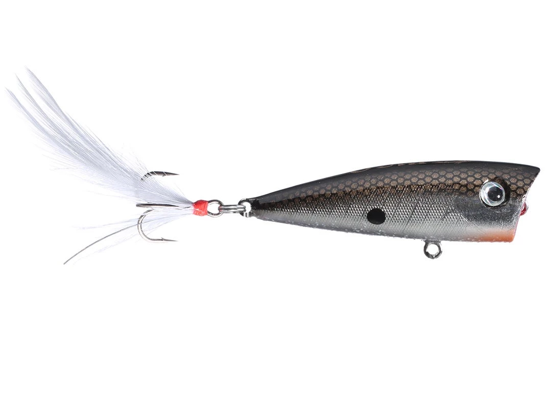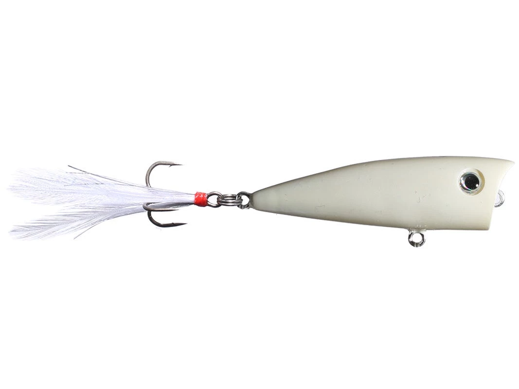 These hard to find lures feature beautiful, intricately painted finishes, sharp hooks and long flowing tails that move and undulate long after the bait has stopped. But the secret is in the design. The cup up front is made to spit just the right amount of water in front of the lure and is tuned to give just the right popping and splashing sound to imitate a baitfish in trouble on top of the water. The Lobina Ricos are just better by design. Prismatic 3D eyes round out the package for a popping bait that cannot be beat.