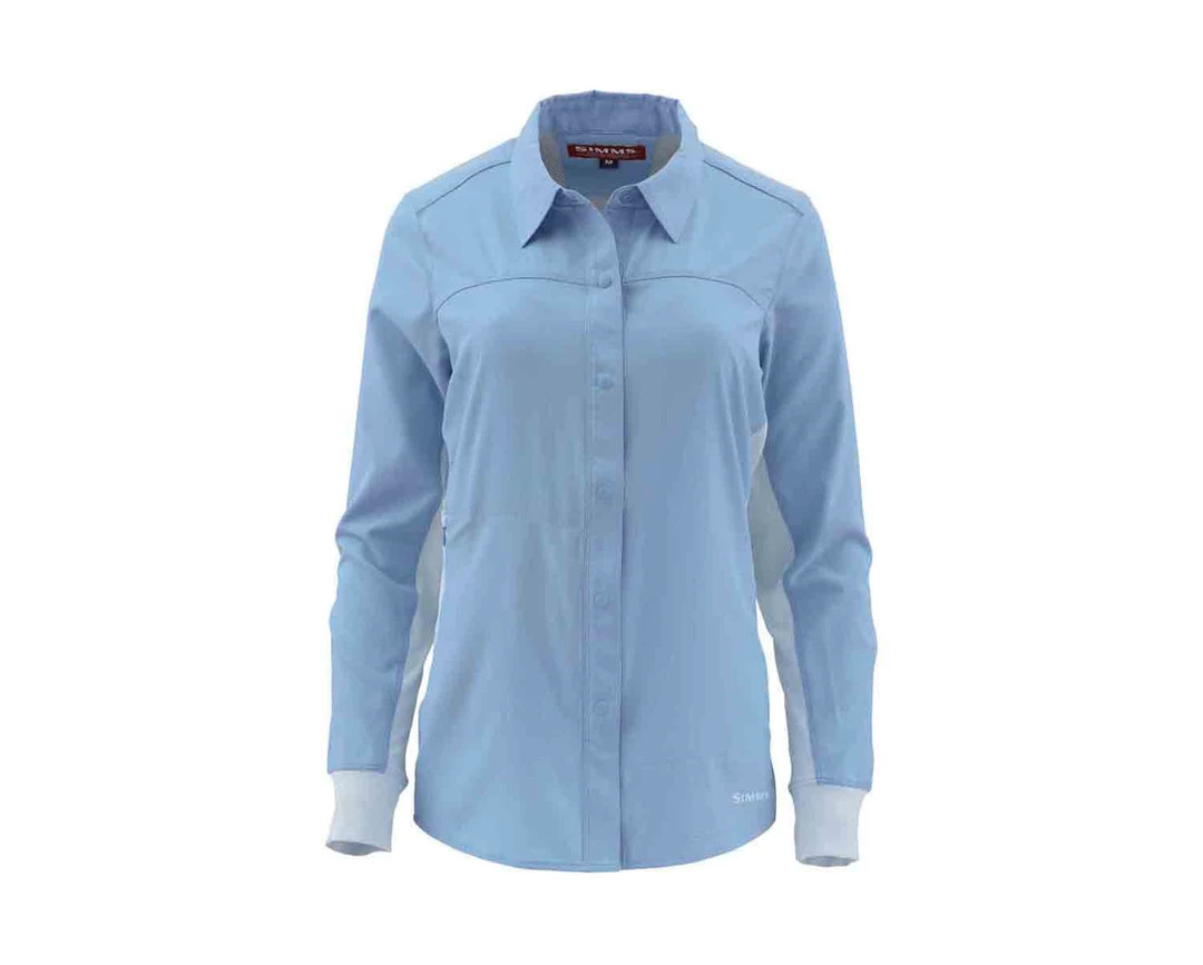 The Simms Women’s BiComp Fishing Shirt is designed to provide comfort and performance on the water. It’s made with COR3™ technology that wicks moisture, dries quickly and offers UPF 30 sun protection. A zippered fly-box compatible pocket provides storage space, and a sunglass chamois is located inside the bottom hem.