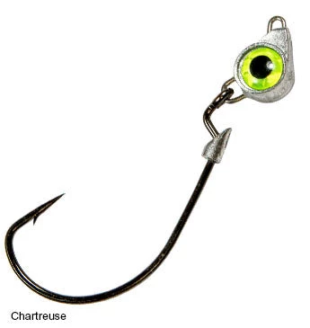 Melding a weedless Texas rig with a free-pivoting jighead and the prominent strike target of oversized 3D eyes, the Texas Eye Jighead gives anglers an unbeatable one-two punch. Designed to easily shed grass and prevent fouling or snagging on wood, rock, or shell, the flat sided head and upturned line tie eyelet creates a stable jighead with a spoon-like swimming quality when paired with either paddle-tail swimbaits or straight-tail baits. The Texas Eye Jighead features beefy construction that makes it ideal for a variety of applications that require a snag-resistant presentation in fresh- or saltwater, from pitching baits to laydowns for trophy largemouth to plying the Louisiana marsh for bull redfish.Â
